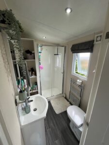 Twee slaapkamers en badkamer met toilet. Kunststof, volledig geïsoleerd, dubbel glas en alle ruimtes zijn voorzien van verwarming en er is een airco aanwezig.