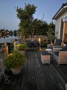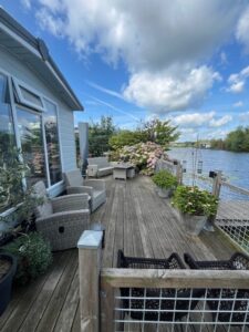 Kindvriendelijk terras waarbij steiger (met zwemtrap) afgesloten kan worden